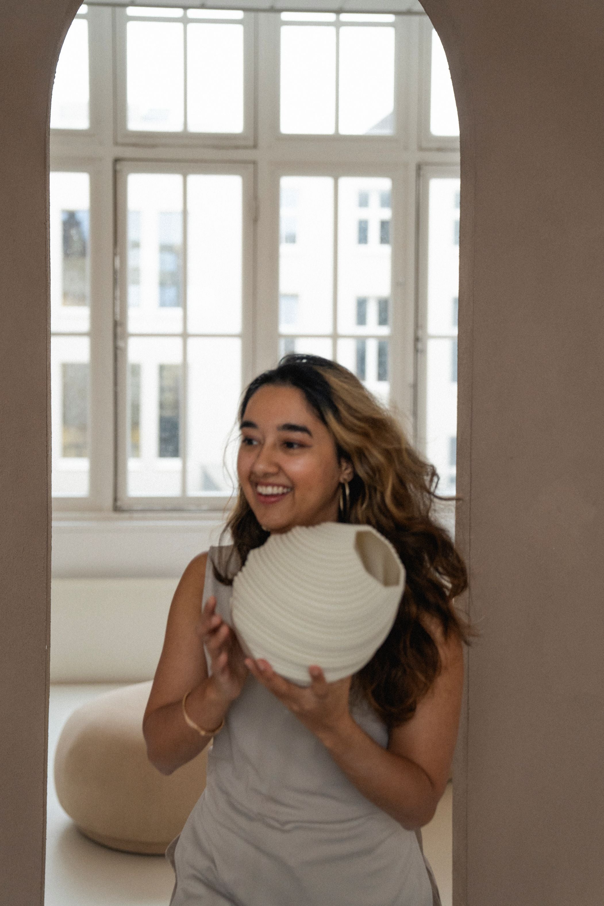 Anh ontwierp tijdens Kwaku live haar lamp: warm en sfeervol licht, duurzaam materiaal en een modern design dat perfect in haar interieur past.