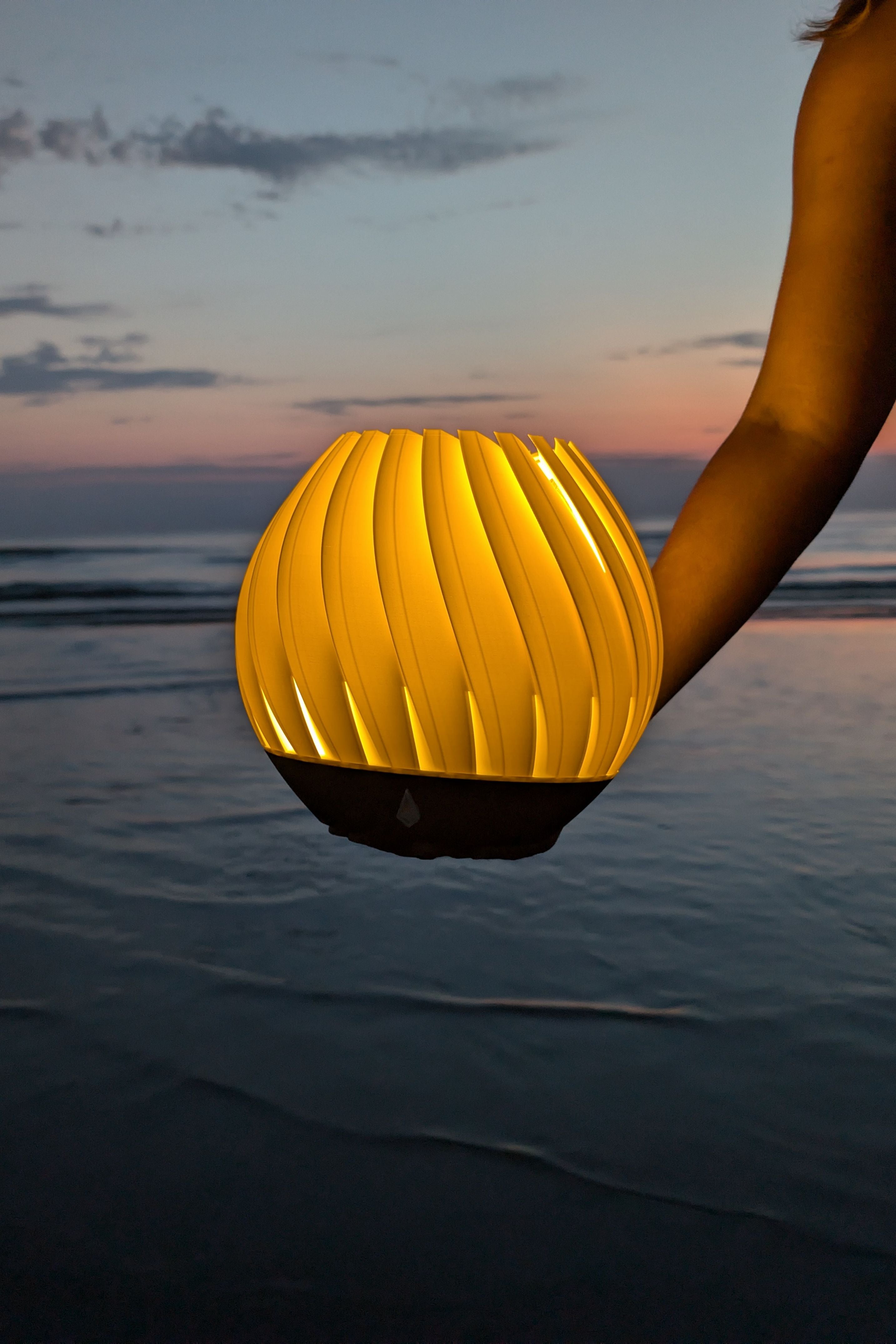 Anna, architecte, ontwierp een moderne lamp met vloeiende lijnen.