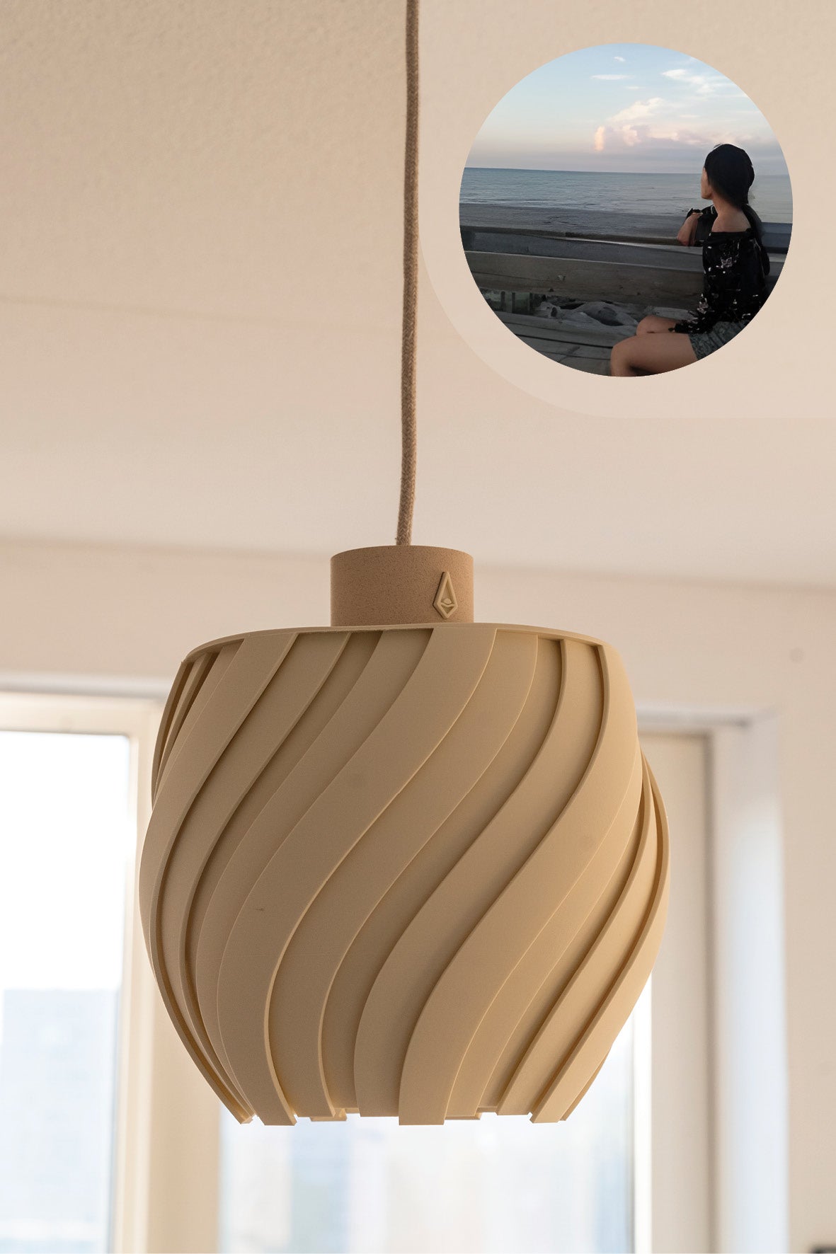 Na hun verhuizing wilden Shan en Vagelis iets unieks voor de slaapkamer – een lamp die echt van hen samen was. Ze kozen voor een zelfontworpen driepuntslamp in zacht beige: rustig van kleur, maar opvallend in vorm.